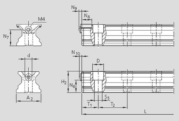 2)精度等級H和P,規(guī)格35至65的導(dǎo)軌在特殊情況下,也可供貨長約為6000mm的單段導(dǎo)軌。