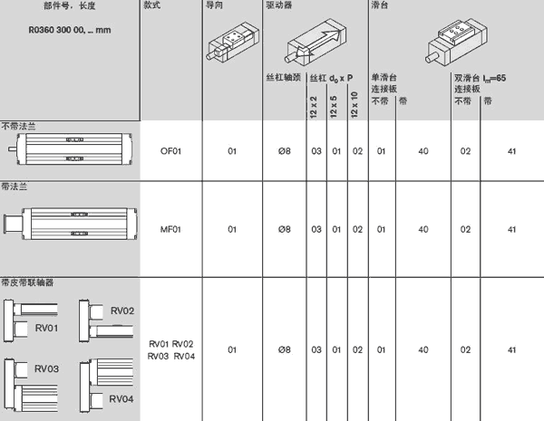| 滑臺數量 絲杠 d0*P 額定動載荷 C 導向 絲杠 | | |